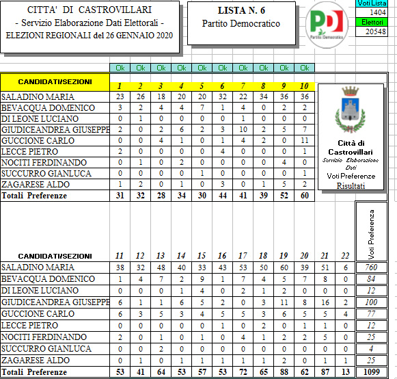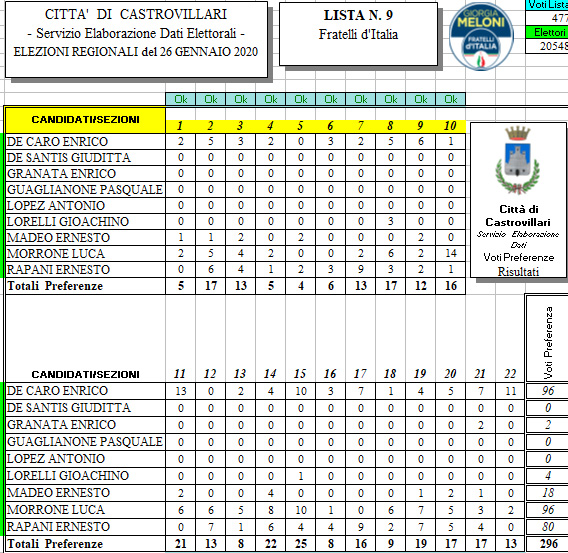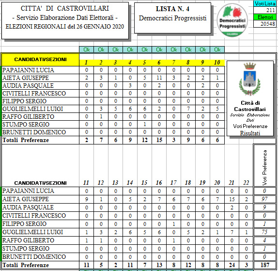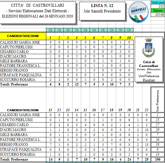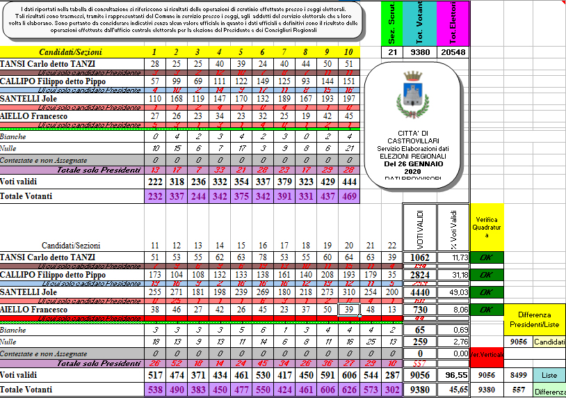 termmine delle Elezioni regionali del 26 gennaio 2020. Presidente: Jole