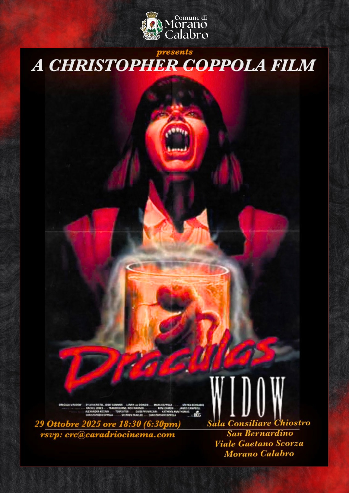 Grande Cinema, a Morano calabro, proiezione di " Dracula' s Widow " con la presenza del regista Christopher Coppola fratello di Nicolas Cage e nipote di Francis Ford Coppola - Mercoledi' 29 ottobre 2025, alle 18.30, nel Chiostro San Bernardino, evento internazionale: proiezione del film " Dracula' s Widow ", del regista statunitense Christopher Coppola, fratello di Nicolas Cage e nipote di Francis Ford Coppola. La pellicola, realizzata nel 1988, thriller gotico che vede la celebre Sylvia Kristel recitare nel ruolo principale, segna l’esordio alla regia di Christopher Coppola e si distingue per la sua cifra visionaria e per la capacità di fondere le atmosfere classiche del mito di Dracula con i toni urbani e dissonanti dell’horror anni Ottanta. Di chiare origini italiane, Christopher è cineasta, produttore e docente universitario. La sua carriera abbraccia titoli di genere, opere indipendenti e progetti educativi, tra cui il festival digitale PAH-FEST, dedicato alla democratizzazione del linguaggio cinematografico. Formatosi al San Francisco Art Institute, si è distinto per la sua originale poliedricità, che lo colloca tra gli autori più interessanti della scena indipendente americana e nel panorama contemporaneo. La decisione di presentare “Dracula’s Widow” a Morano testimonia il sincero affetto nutrito da Christopher per l’antico centro del Pollino, che frequenta da tempo. L’iniziativa si inserisce nel programma di valorizzazione della settima arte e di promozione del borgo come luogo d’incontro tra creatività e memoria. «È per noi motivo di onore annoverare tra i nostri ospiti abituali un artista di tale levatura», afferma il sindaco Mario Donadio. «La partecipazione di Christopher, che sarà con noi in sala, conferma l’attrattiva del nostro villaggio e la sua vocazione a essere punto di riferimento culturale anche per settori sinora meno attenzionati come quello cinematografico. Alla luce del rapporto di stima e amicizia instauratosi, presto omaggeremo il regista con un segno simbolico di prossimità e riconoscenza». La serata sarà introdotta da un breve intervento dell’Amministrazione comunale e da un momento di saluto al pubblico. ( comunicato )