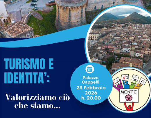 CIVICAMENTE: " Turismo e identita': valorizziamo cio' che siamo ". Confronto pubblico lunedi' 23 febbraio alle ore 20 a Palazzo Cappelli - Civicamente promuove un incontro pubblico dedicato al turismo lunedì 23 febbraio alle ore 20.00 a Palazzo Cappelli, come momento informativo e di ascolto per raccogliere idee, esperienze e proposte utili alla crescita di Castrovillari. Il confronto partirà dai temi più concreti: ricettività diffusa e valorizzazione della rete dei B&B, potenziamento delle manifestazioni già consolidate (Carnevale, Festival del Folklore, Primavera dei Teatri, Festival della Cipolla Bianca) e sviluppo di un turismo esperienziale legato a tradizioni, botteghe artigiane e identità del centro storico e della Civita. L’obiettivo è costruire una visione di medio periodo: Castrovillari come punto di riferimento e accoglienza per un territorio straordinario, con una programmazione capace di aumentare permanenze e opportunità. L’incontro è aperto a cittadini, operatori del settore, associazioni culturali e turistiche, guide, realtà della Civita e a chiunque voglia contribuire con idee e proposte, in un metodo di partecipazione reale e confronto costruttivo.