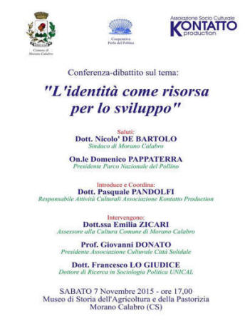 MORANO CALABRO CONFERENZA DIBATTITO SUL TEMA: L' IDENTITA' COME RISORSA PER LO SVILUPPO |