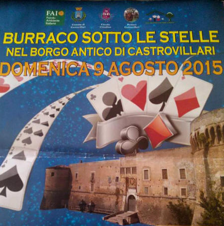 Castrovillari, il 9 agosto a partire dalle ore 21 prima edizione di " Burraco sotto le stelle " - Prendi due mazzi di carte francesi in una location particolare come il centro storico di Castrovillari e una domenica di agosto si anima improvvisamente. E' cio' che accadra' il 9 agosto nella citta' del Pollino in occasione della prima edizione del " Burraco sotto le stelle ", manifestazione organizzata dal Circolo Cittadino locale in collaborazione con il FAI, l’Amministrazione Comunale, La Pro Loco e il Centro Anziani Varcasia. Sarà una giornata particolare per i partecipanti al torneo che si terrà dalle 21.00 all’interno del chiostro del Protoconvento Francescano i quali potranno trascorrere una giornata a conoscere storia e tradizione della nostra Città. Nel pomeriggio infatti è prevista una visita guidata della “Civita”, il centro storico castrovillarese, e poi assistere ad uno spettacolo folkloristico e poter gustare infine i prodotti tipici locali. Dalle 21 in poi spazio alle carte ed alle coppie iscritte al torneo che si concluderà alle 24 con la premiazione.
