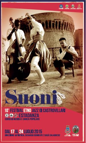 SUONI, Festival Etno Jazz, X Edizione dal 17 al 24 luglio 2015 a Castrovillari si parte con Estadanza – Al via domani ufficialmente la decima edizione di “ Suoni “, Festival Etno Jazz organizzato dalla Pro Loco di Castrovillari in collaborazione con il Comune di Castrovillari, con la Regione Calabria, con la Provincia di Cosenza e con la FITP ( Federazione Italiana Tradizioni Popolari). La novita’ assoluta di questa edizione si chiama “ Estadanza “ e consiste in corsi di musica e danza popolare con il prof. Pino Gala, ricercatore etnocoreologo, antropologo della danza. Dal 1984, il prof. Gala, organizza e dirige il Laboratorio nazionale di danza popolare "Estadanza", appunto. Campus scuola residenziale con lezioni teorico-pratiche di Etnocoreologia, Tecnica del ballo popolare, Antropologia Culturale, Etnomusicologia, Storia delle Tradizioni Popolari. I corsi che si terranno a Castrovillari, gratuiti per i residenti, avranno la supervisione di UISP Danza, L’intento è quello di mantenere vivi balli e musiche tradizionali e soprattutto quell’atmosfera festosa tipica della tradizione popolare. PROGRAMMA CORSI ESTADANZA - Venerdì 17 luglio 2015 Ore 15.30/21.00, Sabato 18 Luglio 2015, Ore 09.00/12.00 15.00/ 19.00, Domenica 19 Luglio 2015 Ore 09.00/12.00 15.00/18.00, Lunedì 20 luglio 2015 Ore 10.00/12.00 15.00/17.00, Martedì 21 luglio 2015 Ore 10.00/12.00 15.00/18.00, Mercoledì 22 luglio 2015 Ore 09.00/12.00 15.00/18.00, Giovedì 23 luglio 2015 Ore 09.00/12.00 15.00/18.00, Venerdì 24 luglio 2015 Ore 09.00/11.00.
