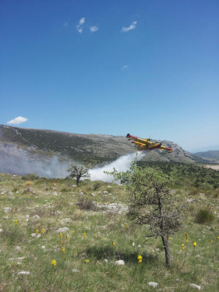 Da alcune ore e' in corso un incendio cha sta interessando la macchia mediterranea ( in gran parte ginestre ) in localita' Manfriana di Castrovillari ( CS ) all' interno del perimentro del Parco del Pollino. Sul posto stanno operando il Corpo Forestale dello Stato di Morano Calabro e Civita con l’ausilio di un Canadair 15. |