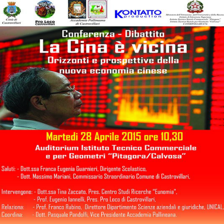 LA CINA E' VICINA ORIZZONTI E PROSPETTIVE DELLA NUOVA ECONOMIA CINESE SE PARLA MARTEDI' 28 APRILE AL PITAGORA DI CASTROVILLARI |