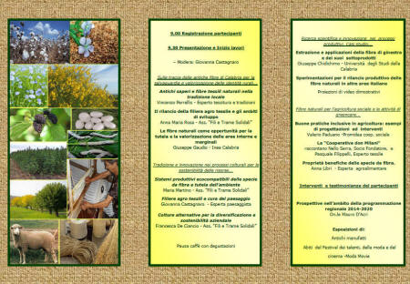 Giovedi' 16 aprile alle ore 9:00 presso l' Unical, nell' Aula " Carmine Candiano " del CRA-OLI, in C.da Li Rocchi—Vermicelli di Rende ( CS ), si terra' l’incontro dal tema " La filiera agro tessile: antiche colture e nuove opportunita' di sviluppo ", iniziativa cofinanziata con il FEASR PSR Calabria 2007-2013, Misura 111 Azione 3 –Informazione, promossa dall' ATS " Terre e Fili di Calabria ", e coattuata dall' Associazione di promozione sociale " Terre e Fili di Calabria ". L' incontro informativo, che vede l' intervento di numerosi esperti, ricercatori e professori universitari, ha la finalita' di dimostrare come la riproposizione, su scala regionale, delle tradizionali filiera agro-tessili in chiave innovativa possa costituire un volano di sviluppo per i territori calabresi. Ad una prima sessione puramente teorica, durante la quale relazioneranno Vincenzo Perrellis, Anna Maria Rosa, Giuseppe Gaudio, Maria Martino, Giovanna Castagnaro, Francesca De Ciancio, Giuseppe Chidichimo, Anna Libri, seguirà una fase prettamente empirica, durante la quale verranno illustrati, a cura di Valerio Paduano, Nello Serra e Pasquale Filippelli, alcuni casi virtuosi di filiera già operativi e riconosciuti a livello nazionale, al fine di dimostrare la sostenibilità delle operazioni. Durante i lavori saranno raccolte manifestazioni d’interesse e suggerimenti, da parte degli stakeholder presenti e degli imprenditori agricoli interessati ad aderire al PIF (Progetto Integrato di Filiera), che si intende avviare a tergo della kermesse, la quale verrà riproposta in chiave sempre differente sulle altre quattro province calabresi. Concluderà i lavori l’On.le Mauro D’acri, che relazionerà sulle Prospettive della filiera agro-tessile nell’ambito della programmazione regionale 2014-2020. |