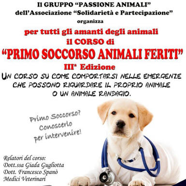 Castrovillari - Conclusa con successo la terza edizione del " Primo Soccorso Animali Feriti ". Grande interesse per la terza edizione del corso " Primo Soccorso Animali Feriti ": ennesima iniziativa di sensibilizzazione del gruppo Passione Animali. Continuita' negli anni e professionalita' queste le caratteristiche delle attivita' di sensibilizzazione del Gruppo " Passione Animali " dell' associazione " Solidarieta' e Partecipazione " di Castrovillari con i suoi corsi formativi rivolti alla cittadinanza al fine di una corretta convivenza tra uomini e animali. In tal senso rientra anche la terza edizione del " Corso di primo soccorso animali feriti ": un corso su come comportarsi nelle emergenze che possono riguardare il proprio animale o un animale randagio. Il corso si è svolto sabato 28 Marzo 2015 e ha visto la partecipazione di un pubblico attento e bisognoso di informazioni . Certe nozioni di primo soccorso infatti possono rivelarsi utili, non solo per il proprietario ma anche nei confronti dei poveri cani e gatti randagi che, giornalmente, sono vittime di incidenti. Relatori di questo corso di approfondimento sono stati anche quest’anno la dott.ssa Giada Gugliotta e il dott. Francesco Spanò, medici veterinari di Castrovillari. Al termine del corso ai partecipanti è stato rilasciato un attestato di partecipazione. Gruppo “Passione Animali” dell’associazione “Solidarietà e Partecipazione” Castrovillari.