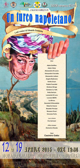 A MORANO CALABRO LA XIV STAGIONE DI TEATROMUSICA CHIUDE IL SIPARIO CON " UN TURCO NAPOLETANO " DI EDUARDO SCARPETTA. LO SPETTACOLO ALL' AUDITORIUM COMUNALE DOMENICA 12 APRILE |