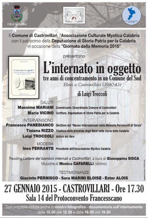 CASTROVILLARI - IN OCCASIONE DELLA GIORNATA DELLA MEMORIA, PRESENTAZIONE DEL LIBRO: " L' INTERNATO IN OGGETTO: TRE ANNI DI CONCENTRAMENTO IN UN COMUNE DEL SUD EBREI A CASTROVILLARI (1940-43) " |