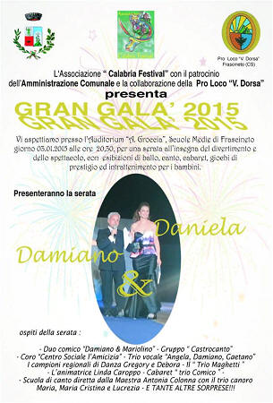 FRASCINETO - L' ASSOCIAZIONE CALABRIA FESTIVAL CON IL PATROCINIO DELL' AMMINISTRAZIONE COMUNALE E LA COLLABORAZIONE DELLA PRO LOCO " V. DORSA " ORGANIZZA " IL GRAN GALA' 2015 " |