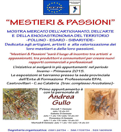CASTROVILLARI " MESTIERI & PASSIONI ", MOSTRA MERCATO DELL' ARTIGIANATO, DELL' ARTE E DELL' ENOGASTRONOMIA DEL TERRITORIO - POLLINO, ESARO, SIBARITIDE |