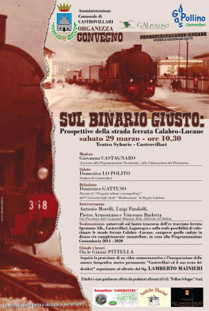 CASTROVILLARI. IL 29 MARZO AL SYBARIS UN CONVEGNO SULLE PROSPETTIVE DELLA STRADA FERRATA CALABRO-LUCANA, IL BINARIO, OGGI, GIUSTO PER CONIUGARE ED INTEGRARE ESISTENTE ,TURISMO, CRESCITA E SOSTENIBILITA' |