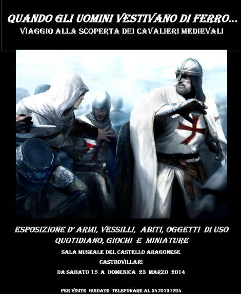 CASTROVILLARI/MOSTRE. CON IL PATROCINIO DELL' AMMINISTRAZIONE COMUNALE LO POLITO E L' ORGANIZZAZIONE DELLE ASSOCIAZIONI SIFEUM E MYSTICA CALABRIA GLI USI E COSTUMI DEI CAVALIERI MEDIEVALI DAL 15 AL 23 MARZO NELLA SALA MUSEALE DEL CASTELLO ARAGONESE |
