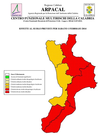 CALABRIA PERICOLO MALTEMPO EMESSO UN PRIMO BOLLETTINO DI CONDIZIONI METEOROLOGICHE AVVERSE DALLE 20 DEL 31 GENNAIO ALLE 20 DELL' 1 FEBBRAIO |