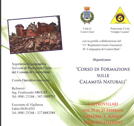 CASTROVILLARI A SCUOLA DI PROTEZIONE CIVILE. DAL 25 AL 27 FEBBRAIO 16 ORE DI FULL IMMERSION |