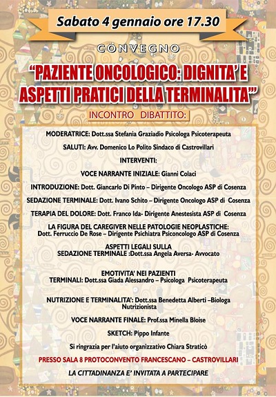 CASTROVILLARI - CONVEGNO:" PAZIENTE ONCOLOGICO: DIGNITA' E ASPETTI PRATICI DELLA TERMINALITA' " |