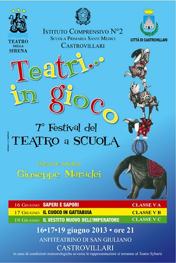 TEATRI IN GIOCO 7° Festival del Teatro a Scuola - Si e' conclusa con rinnovato successo di pubblico la 7° edizione di TEATRI IN GIOCO Festival del Teatro a Scuola, nella splendida cornice dell' Anfiteatrino di San Giuliano nel cuore del centro storico. La manifestazione, che ha visto protagonisti gli alunni delle classi quinte della Scuola Primaria SS. Medici dell' Istituto Comprensivo Castrovillari 2, ha ripreso il suo cammino dopo un anno di fermo dovuto alla mancanza di risorse economiche. Il Comune di Castrovillari ha deciso quest’anno di sostenere questa attività di teatro scuola, rendendo così possibile la ripresa dell’evento. Le tre serate di spettacolo hanno visto coinvolti tutti gli alunni delle tre classi quinte che hanno rappresentato i loro lavori, preparati ed allestiti durante il laboratorio teatrale. Questo Istituto pertanto, già da sempre all’avanguardia nel campo della drammatizzazione ed animazione teatrale, torna prepotentemente alla ribalta del panorama cittadino. La massiccia partecipazione ha dimostrato ancora una volta che il Festival ha consolidato, fin dalla sua prima edizione, il suo ruolo, guadagnandosi un pubblico proprio e specifico, che va al di là della cerchia ristretta di genitori e parenti. Questo aspetto e soprattutto l’importanza dell’alto valore educativo e formativo ed anche di aggregazione sociale, di responsabilizzazione e di crescita è stato sottolineato dal Dirigente Scolastico Dott. Immacolata Gisella Mainieri e riconfermato con convinzione ed entusiasmo dal sindaco di Castrovillari Avv. Domenico Lo Polito e dal consigliere Prof. Giuseppe Russo (delegato alla Pubblica Istruzione), che hanno già annunciato il rinnovato impegno e sostegno perchè l’importante iniziativa possa continuare anche negli anni a venire. Gli stessi hanno espresso inoltre grande apprezzamento e soddisfazione per la qualità del lavoro svolto e per il livello tecnico ed espressivo raggiunto ed acquisito dai giovani allievi, cosa, che hanno rimarcato, non poteva non avvenire data la grande competenza ed esperienza di chi ha tenuto i laboratori, il M° Giuseppe Maradei del Teatro della Sirena, da più di un decennio impegnato nell’attività didattica nell’ambito scolastico e formatore ormai di più generazioni. Soddisfattissimo anche quest’ultimo, ideatore e direttore artistico della Rassegna che ha spiegato sinteticamente ancora una volta lo spirito della manifestazione: “Nell'antico centro storico, il teatro riporta i fanciulli ed l il gioco in strada. Il teatro come gioco, ma anche il gioco del teatro e soprattutto il teatro che si mette in gioco. Concepire la “mess’in scena” come “mess’in gioco” è alla base del lavoro svolto. Un teatro essenzialmente ludico, nel quale il bambino, oltre ad apprendere tecniche ed aspetti della messinscena, in un grande momento di aggregazione, socializzazione e responsabilizzazione, possa dare spazio alle proprie fantasie, sfogo alle proprie esuberanze, espressione e colore ai propri sentimenti.”. |