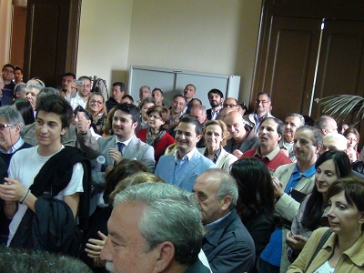 CASTROVILLARI PROCLAMAZIONE DEL SINDACO E DEI CONSIGLIERI COMUNALI - La proclamazione del nuovo Sindaco e dei nuovi Consiglieri è avvenuta questa mattina alle ore 13 nella Sala Giunta, presente il Segretario Generale dell’Ente, dottore Maurizio Ceccherini ed il Responsabile dell’Ufficio Elettorale comunale, dottor Franco Martino. L’Ufficio Centrale Elettorale, nominato dal Tribunale, composto da operatori del Foro di Castrovillari: Avvocati, Cancelliere con mansione di Segretario e un Magistrato con funzione di Presidente, riunito al primo piano di palazzo Gallo, ha verificato, dal punto di vista formale, gli atti prodotti dai presidenti di seggio circa le operazioni di voto riguardanti il Ballottaggio, per l’elezione a Sindaco del capoluogo del Pollino, avvenuto il 20 e 21 maggio scorsi. In seguito alle preferenze, che sono state riportate ed ottenute dai due aspiranti, ha proclamato la vittoria del candidato a Sindaco, Domenico Lo Polito e dei Consiglieri eletti il 6 e 7 maggio scorsi, collegati alla sua affermazione. A tal proposito la nuova Assise, già prefigurata, osserva questa composizione: per la maggioranza Nicola di Gerio, Piero Vico, Lucio Rende, Armando Garofalo per il PD, Carlo Sangineti e Pasquale Russo per il PSI, Dario D’Atri, Eugenio Salerno per l’UDC, Peppino Pignataro per il SEL, Antonio Viceconte per i Progressisti; mentre per la minoranza Mario Rosa, Ferdinando Laghi, Anna De Gaio (quest’ultima per il PDL), Onofrio Massarotti per Città Viva, Francesco Dolce per Italia dei Valori e Giuseppe Santagada per Castrovillari Solidale. Subito dopo la proclamazione il neo Sindaco Domenico Lo Polito ha dichiarato : “ La gioia dell’insediamento, conseguente la proclamazione è arricchita ed impreziosita dalla presenza dei consiglieri comunali eletti e di tanti amici che, con spirito di appartenenza alla comunità, mi hanno sostenuto in questa vittoriosa Campagna Elettorale, partita da gennaio con le primarie.” L’Ufficio Stampa del Comune di Castrovillari (g.br.)