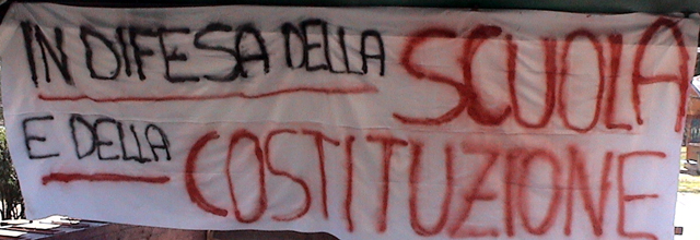 SI E' TENUTA PRESSO IL PARCO GIOCHI COMUNALE DI CASTROVILLARI LA MANIFESTAZIONE A DIFESA DELLA COSTITUZIONE E DELLA SCUOLA PUBBLICA, L' EVENTO ORGANIZZATO DAL CENTROSINISTRA PERFETTAMENTE IN LINEA CON ALTRI MOMENTI DI AGGREGAZIONE PREVISTI NELLA GIORNATA IN TUTTA ITALIA, HA VOLUTO CONTRIBUIRE, SERVENDOSI DELLA LETTURA DI UN PASSO DI PIERO CALAMANDREI A MEGLIO CHIARIRE LA POSIZIONE DEL MOVIMENTO STUDENTESCO IN MERITO ALL' ATTEGGIAMENTO CHE LE DISPOSIZIONI MINISTERIALI HANNO RISPETTO ALLA PRIVATIZZAZIONE DI TUTTA UNA SERIE DI SERVIZI GIA' ADEGUATAMENTE GARANTITI DALLA NOSTRA COSTITUZIONE E CONTRO L' IDEA DI PRIVATIZZARE LA CONOSCENZA ED IL SAPERE. DATI ALLA MANO LA SCUOLA PUBBLICA NEGLI ULTIMI TRE ANNI HA PERSO 120.000 POSTI DI LAVORO, E' RITORNATO IL MAESTRO UNICO ALLE SCUOLE ELEMENTARI, SONO STATI ELIMINATI GLI INSEGNANTI DI INGLESE NELLE SCUOLE PRIMARIE, SONO STATE RIDOTTE LE ORE SETTIMANLI NEGLI ISTITUTI ED AUMENTATO IL NUMERO DI ALUNNI PER CLASSE. IN CALABRIA IN PARTICOLARE NELL' ANNO SCOLASTICO 2011/2012 SI PERDERA' IL 4,03% DEL PERSONALE A FRONTE DI UNA MEDIA NAZIONALE DEL 3,17% SENZA CONTARE LA CHIUSURA DI SCUOLE NEI CENTRI MONTANI, QUALCOSA CHE CONTRIBUIRA' AD AGGRAVARE LO STATO DI DEGRADO ED ABBANDONO DI UN TERRITORIO GIA' DI PER SE BERSAGLIATO. IL VIDEO INTEGRALE DELL' EVENTO