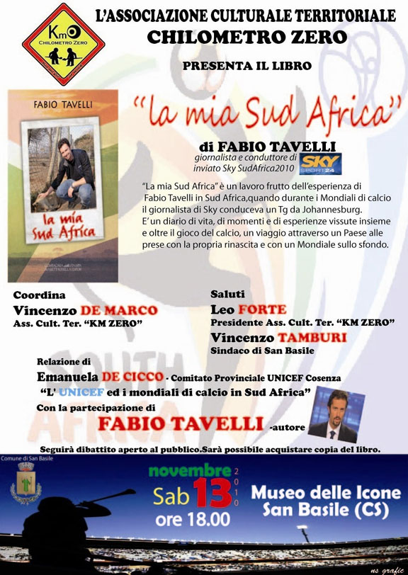 FABIO TAVELLI, POPOLARE CONDUTTORE DI SKY SPORT 24, INVIATO IN SUD AFRICA DURANTE GLI ULTIMI MONDIALI DI CALCIO E AUTORE DEL LIBRO " LA MIA SUD AFRICA ", FARA' TAPPA ANCHE NEL POLLINO PER PRESENTARE LA SUA FATICA EDITORIALE |