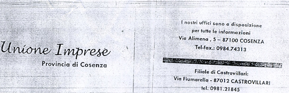 UNIONE IMPRESE ASSOCIAZIONE DEI COMMERCIANTI, DEGLI ARTIGIANI E DELLE PICCOLE E MEDIE IMPRESE, SI È FORMATA NELLA PROVINCIA DI COSENZA DA CIRCA DUE ANNI COME MOMENTO DI DISTACCO DALLA CONFCOMMERCIO E DAL SUO MODO DI RAPPRESENTARE I COMMERCIANTI E GLI OPERATORI DEL TERZIARIO E DEI SERVIZI. A CASTROVILLARI L' ASSOCIAZIONE COMUNICA L'INSEDIAMENTO DI UN DIRETTIVO COMPOSTO DA 12 IMPRENDITORI LOCALI E DELLA ZONA CON L'OBIETTIVO DI TORNARE A RAPPRESENTARE UN PUNTO DI RIFERIMENTO PER LE CATEGORIE INTERESSATE. L'ORGANO DIRIGENTE DELL'ASSOCIAZIONE RISULTA COMPOSTO DA: LUCA ANNICCHIARICO, DOMENICO CAMPILONGO, FILOMENA CERCHIARA, RINO CONTESI, GIANNI COVELLI, FRANCESCO GRANITO, CARMINE GRECO, VINCENZO LAITANO, DOMENICO MALARA, VALENTINO MARI, SPINICCI, PINO SANGIOVANNI. QUESTO DIRETTIVO.NELLA RIUNIONE DEL 9 OTTOBRE U.S. HA INDIVIDUATO IN VALENTINO MARI IL PRESIDENTE CHE GUIDERÀ L'ASSOCIAZIONE NELL'ANNO 2009-2010.SONO STATI ELETTI INOLTRE UN VICEPRESIDENTE (CONTESI) ED UN SEGRETARIO (FILOMENA CERCHIARA). LE DUE LINEE GUIDA CHE ISPIRERANNO IL PROGRAMMA DELL'ASSOCIAZIONE UNIONE IMPRESE SONO QUELLE DI TORNARE A RAPPRESENTARE IN MANIERA IMPORTANTE E ADEGUATA LE ESIGENZE E LE ISTANZE ORDINARIE E STRAORDINARIE DEGLI ASSOCIATI E DELLE CATEGORIE RAPPRESENTATE, FORNENDO SERVIZI CHE PERALTRO NON SONO MAI STATI INTERROTTI, ANZI ALCUNI ADDIRITTURA POTENZIATE, PONENDOSI NUOVAMENTE ALLA TESTA DEGLI OPERATORI CHE PER TROPPO TEMPO NON SONO STATI TUTELATI E RAPPRESENTATI NEI CONFRONTI DEGLI INTERLOCUTORI ISTITUZIONALI ( BANCHE, FORNITORI, CONSUMATORI, ENTI LOCALI ECC... ). ALTRO OBIETTIVO IMPORTANTE SARÀ QUELLO DI AMPLIARE LA BASE PERALTRO GIÀ COSPICUA DEI TESSERATI ATTRAVERSO LA PROPOSTA DI CONVENZIONI E SERVIZI TENDENTI A MIGLIORARE LA QUALITÀ DELLA VITA DELLE CENTINAIA DI PICCOLE E MEDIE IMPRESE DI CARATTERE COMMERCIALE ED ARTIGIANO PRESENTI SUL TERRITORIO. |