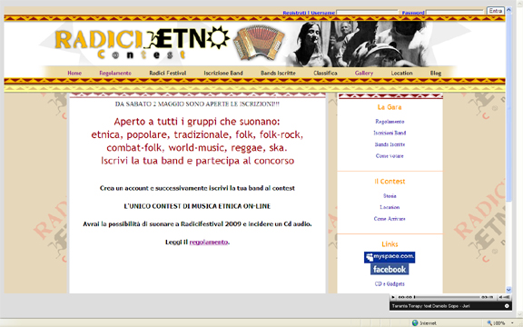 SI RINNOVA L’ APPUNTAMENTO CON RADICI ETNO-CONTEST, DA SABATO 2 MAGGIO SONO INFATTI APERTE LE ISCRIZIONI. POSSONO ISCRIVERSI I GRUPPI CHE SUONANO: ETNICA, POPOLARE, TRADIZIONALE, FOLK, FOLK-ROCK, COMBAT-FOLK, WORLD-MUSIC, REGGAE, SKA. NATA NEL 2007, ARRIVATA ORA ALLA TERZA EDIZIONE, LA RASSEGNA RADICI ETNO-CONTEST, PRENDE VITA COME ATTIVITÀ COLLATERALE DELLA RASSEGNA DI MUSICA ETNICA RADICI FESTIVAL, MANIFESTAZIONE GIUNTA NEL 2008 ALL'OTTAVA EDIZIONE, NELL’EDIZIONE 2009 DIVENTERÀ L’ATTIVITÀ PRINCIPALE SU CUI RUOTERÀ L’INTERO ASSETTO DEL FESTIVAL RADICI. PER PARTECIPARE O ISCRIVERE LA TUA BAND SEGUI IL REGOLAMENTO E LE INFORMATIVE PUBBLICATE SUL SITO: HTTP://WWW.RADICIETNOCONTEST.COM, TERMINE ULTIMO PER L’ ISCRIZIONE È STATO FISSATO AL 13 GIUGNO 2009. |