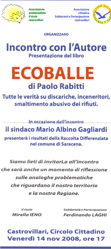 SI E' TENUTA PRESSO IL CIRCOLO CITTADINO DI CASTROVILLARI, LA PRESENTAZIONE DEL LIBRO: " ECOBALLE " DI PAOLO RABITTI |