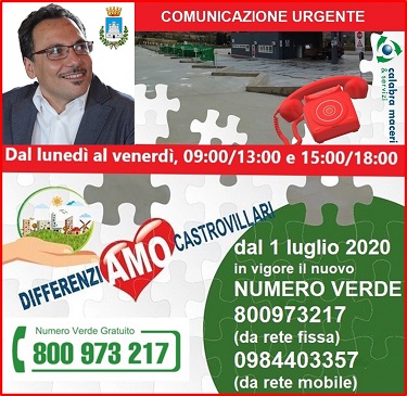Castrovillari/Cambiano i numeri telefonici per il ritiro a domicilio e il conferimento dei rifiuti ingombranti presso l' isola ecologica - " La prenotazione del ritiro gratuito degli ingombranti sul territorio di Castrovillari, per il conferimento di questi presso la nuova Isola Ecologica, operativa da novembre scorso e ubicata in via Cosmai - Zona PiP, all’inizio della strada che porta alla Casa Circondariale, si potrà eseguire, da mercoledì 1° luglio, componendo il numero verde (da rete fissa) 800 973 217 e lo 0984- 403357 (da rete mobile); risponderà direttamente il quartier generale di “Calabra maceri”, azienda che opera pure nel capoluogo del Pollino, la quale darà informazioni sui vari servizi che guida ". Lo rende noto, a nome e per conto, dell’Amministrazione Lo Polito, l’Assessore all’Ambiente, Pasquale Pace, il quale ricorda, inoltre, alla collettività che “presso la nuova isola ecologica è già attivo un apposito sportello per ritirare le forniture gratuite delle buste BIO, dedicate ai rifiuti organici, e gli appositi mastelli grigi per le nuove utenze; questo tipo di prestazione è a disposizione dei cittadini ogni mercoledì dalle ore 8 alle ore 12, e dalle 15 alle ore 18 ". Gli orari dell’isola ecologica per il conferimento diretto dei rifiuti differenziati restano invariati; ecco perché sarà possibile accedervi tutti i giorni, dal lunedì al sabato dalle ore 8 alle ore 13 e, nei pomeriggi di martedì e giovedì dalle ore 15 alle ore 18. |