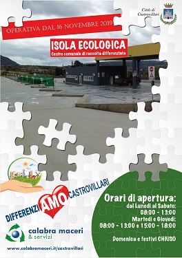Castrovillari, da domani lunedi' 1 giugno riprende a pieno regime il conferimento presso la nuova Isola Ecologica di Castrovillari |