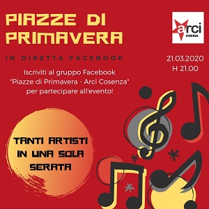 PIAZZE DI PRIMAVERA A CURA DELL' ARCI COSENZA - QUESTA SERA ALLE 20.30 SUL GRUPPO FACEBOOK DELL' ASSOCIAZIONE SABATO 21 MARZO 2020 |