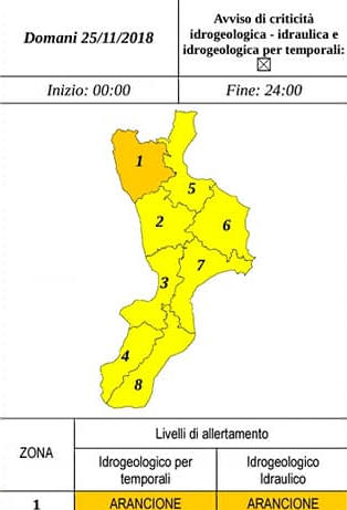 CASTROVILLARI, DOMENICA 25 NOVEMBRE PROBABILI CONDIZIONI METEO PROIBITIVE LO SEGNALA LA PROTEZIONE CIVILE REGIONALE |