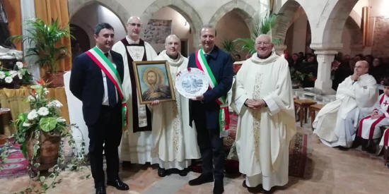 Castrovillari, l' olio di Castrovillari per la lampada votiva di sant' Umile da Bisignano - L' Amministrazione comunale di Castrovillari, con il Sindaco, Domenico Lo Polito, e la Parrocchia di San Francesco di Paola del capoluogo del Pollino, impegnata, con Padre Paolo Sergi, nel Pellegrinaggio per la celebrazione di Sant’Umile da Bisignano, domenica 25 novembre, nel Santuario omonimo, hanno offerto l’olio per la lampada votiva che arde dinanzi alla statua del venerato Santo. L’accensione è avvenuta, durante la liturgia per mano del primo cittadino di Castrovillari Domenico Lo Polito e di quella del Sindaco di Bisignano Francesco Lo Giudice. Al momento, ha presenziato il ministro provinciale dei Frati Minori di Calabria, Padre Fabio Occhiuto. |