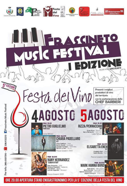 FRASCINETO DAL 4 AL 5 AGOSTO 5ª EDIZIONE DELLA FESTA DEL VINO E, 1ª EDIZIONE FRASCINETO MUSIC FESTIVAL |