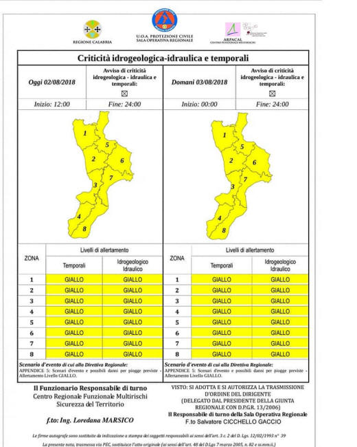 CASTROVILLARI, AVVISO DI CRITICITA' METEO PER IL 3 AGOSTO |