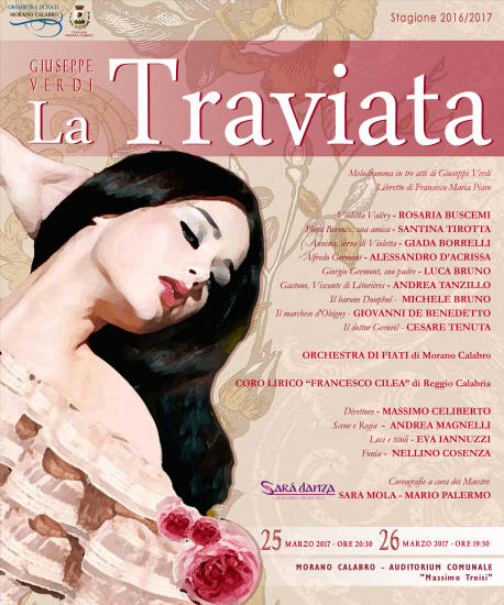 Morano calabro, la XVI stagione di Teatromusica, chiude i battenti con la Traviata di Verdi il 25 e 26 marzo – Sabato 25 e domenica 26 marzo a TeatroMusica arriva l' evento piu' importante dell' intera stagione, l' evento piu' atteso: " La Traviata " di Giuseppe Verdi. " All' indomani dell' Elisir d' amore di Donizetti dello scorso anno ci siamo subiti messi al lavoro per affrontare questa nuova sfida. Portare all’auditorium l’opera immortale di Verdi, eseguita integralmente nella sua versione classica, con scene e costumi dell’epoca ed un ricco cast di professionisti. – spiegano gli organizzatori – Con un unico intento, quello di regalare al pubblico qualcosa di grandioso”. A Morano è il terzo appuntamento con la lirica, dopo le opere buffe “Don Pasquale” e “L’elisir d'amore” si passa al dramma e ancora una volta, l’auditorium comunale si trasforma in Teatro d’Opera; con una “buca per l’orchestra”, allestita per l’occasione che accoglierà i 45 elementi dell’Orchestra di fiati di Morano Calabro, diretta dal M° Massimo Celiberto. Nella serata della prima il sipario si aprirà alle 20,30 mentre domenica l’inizio è previsto per le 19,30. Rosaria Buscemi (soprano - Violetta Valery), Santina Tirotta (mezzosoprano - Flora Bervoix), Giada Borrelli (soprano - Annina), Alessandro D’Acrissa (tenore - Alfredo Germont), Luca Bruno (baritono - Giorgio Germont), Andrea Tanzillo (tenore - il Visconte Gastone), Michele Bruno (baritono - il Barone Douphol), Giovanni De Benedetto (basso - il Marchese d’Obigny) e Cesare Tenuta (basso - il dottor Grenvil) sono i nove protagonisti, cantanti di indiscutibile talento, ognuno dei quali vanta collaborazioni con importanti enti teatrali e attività concertistica sul territorio nazionale e non. Con loro sulla scena si muoveranno i ballerini coreografati dai Maestri Sara Mola e Mario Palermo e numerose comparse in costume. Ad impreziosire il tutto quest’anno ci sarà il prestigioso coro lirico “Francesco Cilea” di Reggio Calabria. Scene e regia sono a cura di Andrea Magnelli, le luci e i titoli (per seguirla meglio l’opera è interamente sopratitolata) sono di Eva Iannuzzi mentre la fonia è affidata a Nellino Cosenza. La Traviata, melodramma in tre atti, su libretto di Francesco Maria Piave è basata su “La signora delle camelie”, opera teatrale di Alexandre Dumas (figlio) e rappresentata per la prima volta al Teatro La Fenice di Venezia nel 1853. Diversamente dall’opera di Dumas, la prima non ebbe un’accoglienza entusiasta. Anzi, Verdi la definì un «fiasco»: se è vero che ci furono problemi con la compagnia di canto del teatro, a influire negativamente sul giudizio del pubblico fu il pesante intervento della censura che impose un’ambientazione settecentesca in luogo di quella contemporanea. La storia di una prostituta d’alto rango, decisa a cambiare vita nell’inutile tentativo di farsi accettare all’interno della società borghese, era considerata decisamente immorale e scandalosa. Dopo un breve, intenso Preludio in cui si affacciano i due temi musicali dell’amore e della morte, la scena d’apertura del primo atto de La Traviata introduce nell’ambiente della mondanità parigina. C'è una gran festa nell'elegante casa parigina di Violetta Valéry, una mondana famosa amante del barone Douphol. Violetta confida all’amica Flora Bervoix l’angoscia che l’opprime a causa della sua salute malferma. Il visconte Gastone De Letorières presenta a Violetta un giovane, Alfredo Germont, già suo ammiratore. Questi invita Violetta a ballare, ma dopo pochi passi la donna, colta da una violenta crisi di tosse, è costretta a fermarsi. Alfredo le dichiara il suo amore e Violetta gli dona una camelia, il suo fiore preferito, invitandolo a tornare da lei quando sarà appassita. Partiti gli invitati e rimasta sola, Violetta si rende conto di essere per la prima volta veramente innamorata. Domenico Donato Per l’Ufficio Stampa della XVI Stagione di TEATROMUSICA |