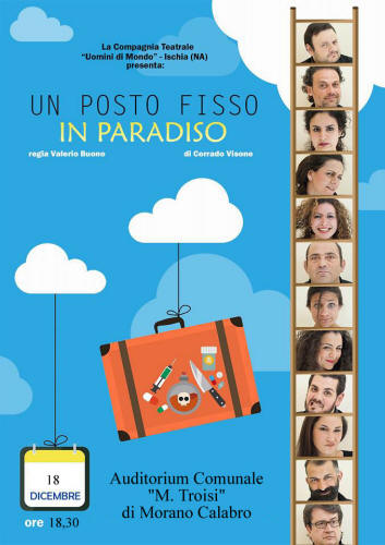 MORANO: DOMENICA 18 DICEMBRE QUINTO APPUNTAMENTO CON TEATROMUSICA DI SCENA " UN POSTO FISSO IN PARADISO " DI CORRADO VISONE |