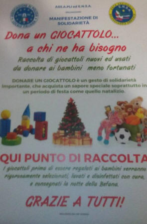 CASTROVILLARI/MANIFESTAZIONE DI SOLIDARIETA' A CURA DI ASS.A.PLI ED E.N.S.A.: " DONA UN GIOCATTOLO A CHI NE HA BISOGNO ", |