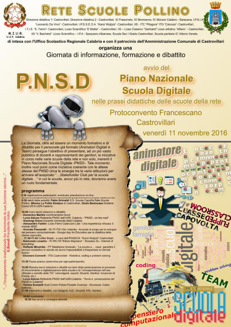 CASTROVILLARI, PIANO NAZIONALE SCUOLA DIGITALE (PNSD), L' 11 NOVEMBRE WORKSHOP FORMATIVO AL PROTOCONVENTO FRANCESCANO |