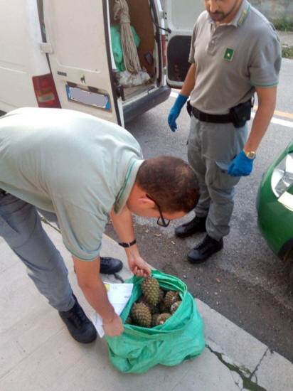 Castrovillari, intervento del Corpo Forestale dello Stato, cinque rumeni denunciati a piede libero – Il personale del Corpo forestale dello Stato di Castrovillari in collaborazione con i reparti di Morano e Civita ha sorpreso cinque cittadini di nazionalità rumena, intenti ad asportare strobili, comunemente chiamate pigne da alcune piante di Pino. Tale attività, come è emerso dalle verifiche era praticata senza le dovute autorizzazioni. Gli uomini del Corpo Forestale hanno intensificato in questi giorni i controlli nelle zone potenzialmente più a rischio per tale tipo di reato ed in prossimità delle aree in cui vi è una forte presenza di Pino Domestico. Due gli interventi che hanno portato all’individuazione dei trasgressori. Il primo a Morano Calabro in località “Mazzicanino” , all’interno del Parco Nazionale del Pollino dove sono stati fermati i primi due uomini intenti a trafugare le pigne, pronte per essere caricate a bordo di un’auto. Inutile la fuga a piedi dei due una volta accortisi della presenza della Forestale,. Sono stati infatti rintracciati e fermati dagli stessi forestali nelle vicinanze del centro abitato. Il secondo intervento in località “Conca del Re” di Castrovillari, dove altri tre rumeni sono stati colti in flagranza mentre raccoglievano gli strobili in una proprietà privata su alcune piante. Per entrambi i casi si è proceduto al sequestro del materiale trafugato sistemato in alcuni sacchi , oltre 10 quintali, degli automezzi in loro possesso e carichi di tale materiale oltre ad alcune aste uncinate e ramponi, mezzi utilizzati per arrampicarsi sugli alberi e prelevare gli strobili. Questo fenomeno alimenta un vero e proprio mercato nero, gli strobili vengono usati per la realizzazione di carbone ed i pinoli venduti per il mercato dolciario, ma tale attività rappresenta anche un serio deturpamento del territorio. Infatti, spesso accade che i frutti vengano raccolti direttamente dagli alberi, con l'effetto di ridurre la naturale propagazione. Per i cinque rumeni, tutti provenienti dal salernitano, è scattata quindi, la denuncia a piede libero per furto aggravato. |