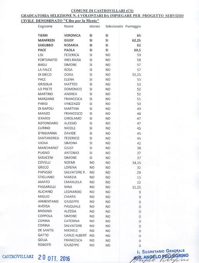 CASTROVILLARI - RESA PUBBLICA LA GRADUATORIA DEFINITIVA DEL PROGETTO DI SERVIZIO CIVILE " IL CIBO PER LA MENTE " |