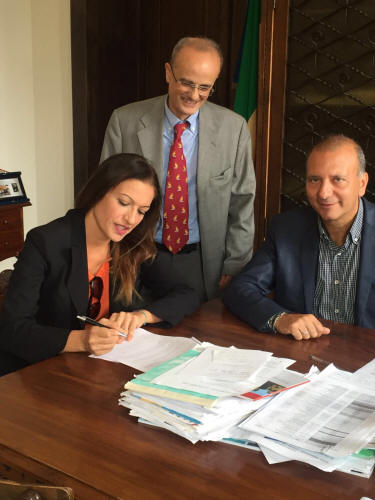 Castrovillari, firmata intesa per la manutenzione del Polisportivo comunale e la gestione del Protoconvento - E' stato siglato dal Sindaco di Castrovillari, Domenico Lo Polito, e da Giacomo D' Angelo per la Societa' Pollino Gestione Impianti s.r.l. il rapporto di collaborazione tra il Comune e lo Sponsor finalizzato alla manutenzione del terreno di gioco del Polisportivo Primo Maggio nonché della verifica degli impianti e della gestione del teatro presso il Protoconvento francescano. La scelta e determinazione scaturiscono- precisa il Sindaco- dal fatto che l’Amministrazione comunale, dopo molto tempo, ritornerà in possesso di propri beni che gestirà con l’ausilio della Società partecipata. “Elementi – ha spiegato il primo cittadino a margine della firma- che hanno fatto decidere per tale tipo di percorso nell’interesse e tutela di questo patrimonio che si vuole ottimizzare con una serie di azioni legate ad una maggiore efficienza ed accoglienza dei luoghi nonché delle stesse dotazioni e servizi. Impegni che fanno parte di un’azione più ampia che si sta portando avanti nell’interesse della collettività e di queste strutture sempre più punto di riferimento d’iniziative sportive, ludiche , d’intrattenimento e culturali che necessitano di una continua risposta ad una domanda pressante di corrispondenza di luoghi ed ambienti idonei a ogni tipo di meeting “. |