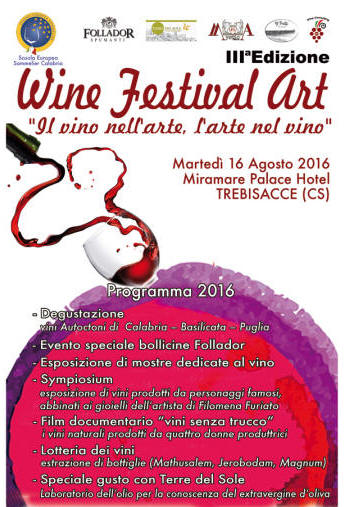 " WINE FESTIVAL ART " A TREBISACCE VINO ED ARTE SI INCONTRANO IL 16 AGOSTO |