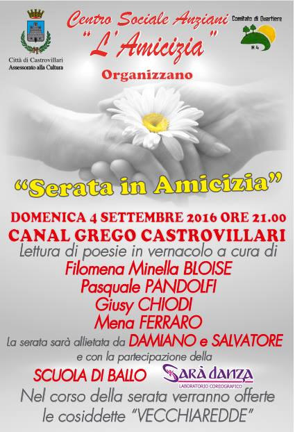 CASTROVILLARI, DOMENICA 4 SETTEMBRE SU CANAL GRECO A PARTIRE DALLE ORE 21 " SERATA IN AMICIZIA " UN MOMENTO DEDICATO ALLA TRADIZIONE LETTERARIA E CULINARIA MA NON SOLO |