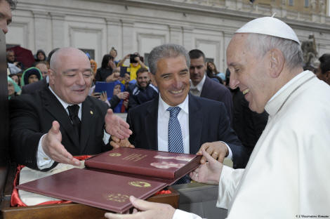 La Pro Loco di Castrovillari incontra sua Santita'. Il diario di bordo scritto da Gerardo Bonifati - Questa volta voglio scrivere e descrivere personalmente le emozioni e le sensazioni di un viaggio che ha segnato l' animo di noi tutti e che ha determinato la scrittura di una pagina indelebile nella storia della Pro Loco di Castrovillari. Un viaggio, del gruppo folklorico accompagnato dal presidente Eugenio Iannelli, allegro e spensierato pieno di aspettative e desideri , ricco di speranza e voglia di preghiera fatto con la consapevolezza di partecipare ad un grande evento ancora da protagonisti, umili. Finalmente a Roma, dopo sistemazione e cena, ci siamo recati a Trastevere per godere della magia dei luoghi che ispirarono Trilussa e che oggi, invasi da numerosi turisti, ispirano ancora i tanti artisti animatori delle affascinanti ed indimenticabili notti romane. Ritornati in albergo, fatte le ultime raccomandazioni per l’osservanza dell’orario di sveglia e la vestizione degli abiti tradizionali, breve riposo. Alle sei del mattino trasferimento nella straordinaria cornice della piazza antistante Castel Sant’Angelo dov'è stato previsto il raduno di ben 48 gruppi folklorici provenienti da tutta Italia in rappresentanza della Federazione Italiana Tradizioni Popolari. Alla testa del corteo, su via della Conciliazione, le nostre stupende, belle e imponenti pacchiane a rappresentare la nostra migliore e bella tradizione. Il corteo ha sfilato fino a Piazza San Pietro dove tutti hanno potuto prendere posto nei banchi predisposti di fronte all’altare. Papa Francesco, da lì, intorno alle 10.00, si sarebbe rivolto a tutti i gruppi per parlare dei temi religiosi scelti per la giornata dedicata al folklore e per la benedizione nel giubileo straordinario della Misericordia. L’allegria portata dalle formazioni folkloriche è stata veramente tanta. Le musiche tradizionali eseguite dalle orchestre trasmettevano gioia e felicità che si è trasformato in vero entusiasmo soprattutto quando il Santo Padre apparso nell’immensa Piazza, nel rivolgere lo sguardo verso la gente, ha manifestato felicità e stupore nel vedere tante persone e tanti bambini vestiti in abiti tradizionali. Finito il giro nella piazza il Santo Padre ha raggiunto l’altare, sul sagrato della maestosa Basilica di San Pietro, e, rivolgendosi all’immensa folla dei tanti fedeli assorti nella preghiera e pronti a ricevere la sua parola e la successiva benedizione, ha iniziato l’omelia. Parole importanti le sue, sagge e significative anche quando ha parlato dell'attenzione dedicata agli animali invitando tutti noi a curare non solo i cani e i gatti, a cui va sicuramente il nostro amore, ma ad essere attenti anche alle sofferenze di tutti gli esseri umani che aspettano e chiedono il nostro aiuto. La pioggia purtroppo ha disturbato e condizionato l'evento dell'incontro con il Papa, ma i gruppi, affascinati ed imperterriti hanno partecipato, ligi, nonostante bagnati come pulcini, alla cerimonia fino alla fine. Sua Santità, dopo la benedizione, ha raggiunto i posti sul sagrato destinato alle autorità presenti. Tra i tanti uomini illustri ed importanti, probabilmente anche immeritatamente, mi sono ritrovato anch’io ricevendo il privilegio di rappresentare la Federazione, la Pro loco, il mio gruppo e con orgoglio la mia città portando in dono una straordinaria opera di Francesco Ortale rappresentante un bassorilievo con San Francesco in atto di perdono ed una Raccolta di Canti Mariani realizzata in collaborazione con il prof. Leonardo Alario, le trascrizioni musicali del prof. Mimmo Martire e rilegata dal M° Gennaro Garofalo. Descrivere le sensazioni è veramente difficile ma grazie alla straordinaria cordialità e affabilità del Santo Padre non ho perso la serenità e lucidità necessaria tanto da parlare con Sua Santità per ben cinque interminabili minuti. Cinque interminabili minuti dove, probabilmente inconsapevole ed ammaliato dal carisma benevolo di Papa Francesco, ho descritto con dovizia di particolari i doni, il loro significato e i loro contenuti scambiando addirittura pareri sull’importanza della conoscenza delle tradizioni popolari. Finito il sogno ritorno in me, ritorno nella piazza, ritorno per salutare gli amici e per abbracciare i componenti del mio gruppo. Ancora frastornato vengo sommerso da decine di domande “cosa ti ha detto, di cosa avete parlato”. È bello, è grande, è straordinario, è un grande Papa, è un grande uomo, è un Papa che sicuramente segnerà la storia religiosa del mondo, è un uomo che sicuramente segnerà la mia vita e la storia del nostro gruppo e di ogni singolo socio che partecipa alla vita della nostra storica e gloriosa Pro Loco. Gerardo Bonifati Direttore Artistico Pro Loco Castrovillari |