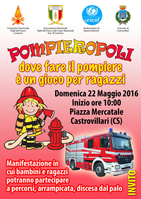 CASTROVILLARI/AREA MERCATALE: DOMENICA 22 MAGGIO " POMPIEROPOLI, DOVE FARE IL POMPIERE E' UN GIOCO PER RAGAZZI " |