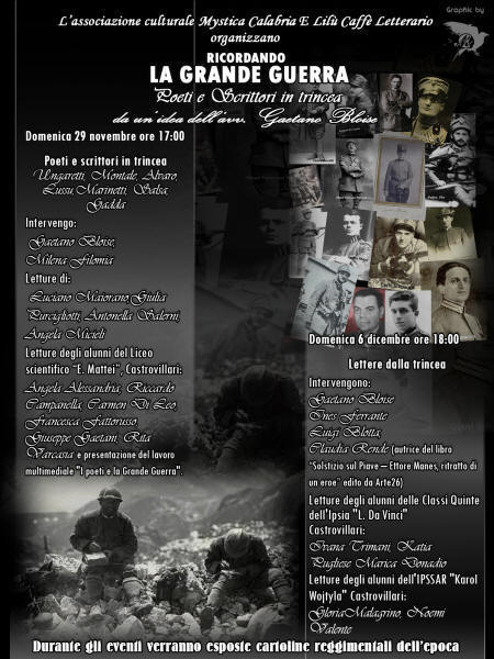 " RICORDANDO LA GRANDE GUERRA: POETI E SCRITTORI IN TRINCEA ", DA UN?IDEA DELL?AVV. GAETANO BLOISE IN COLLABORAZIONE CON L' ASSOCIAZIONE MYSTICA CALABRIA, DOMENICA 29 NOVEMBRE E IL 6 DICEMBRE |