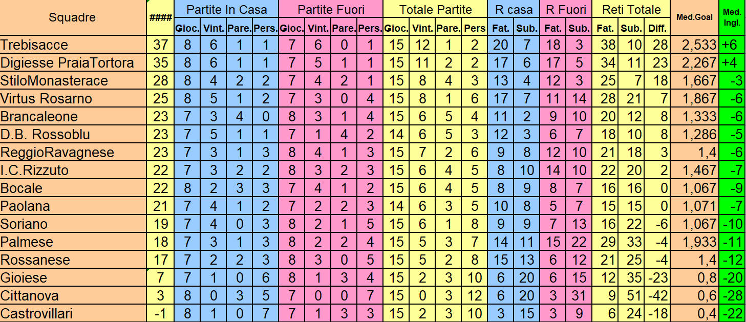Calcio Eccellenza Calabria 15^ giornata - Al giro di boa sconfessati i pronostici di inizio stagione - E' una versione piuttosto particolare l' edizione 2025-2026  del campionato di Eccellenza calabrese, classifica alla mano non può non saltare agli occhi che praticamente tutte le favorite si trovano alla fine del girone di andata impelagate in zona play out, a soli tre punti si piazza la Paolana. Dall' altra parte al vertice della classifica troviamo il Trebisacce una neo promossa, ma non è l' unica: dei quattro posti disponibili per i play off due al momento sono occupati da Stilomonasterace e Virtus Rosarno. Per ora arrivati al giro di boa non si può dire di più, sarà il campo nelle prossime quindici partite, gara dopo gara a finire il disegno ma le evidenze al momento sono indiscutibili. Probabilmente sarebbe opportuno cercare di trovare le cause per chi vive al momento in acque non buone la causa della debacle. Ad ogni modo è noto molto si decide in questo scorcio di dicembre, i team se lo vorranno potranno porre dei rimedi ad eventuali scelte sbagliate in questa finestra di mercato. E' uscito sconfitto, infine il Castrovillari dal match testa-coda contro il Trebisacce, gli jonici hanno avuto la meglio ma non nel gioco i rossoneri hanno mostrato, nonostante l' ultima posizione in classifica di voler vendere cara la pelle. La rete del Trebisacce è arrivata ad opera di Serissa al 34' del s.t. a seguito di un calcio d' angolo, cinque minuti dopo l' infortunio occorso al portiere del Castrovillari, Nana costretto ad uscire al suo posto il secondo Lo Vallo nessuna colpa per lui sulla rete subita, che però agli osservatori è apparsa un pò " stupida " per come è venuta. Relativamente a questo primo scorcio di campionato a guardare i risultati ottenuti anche in termini di reti subite dalla nona giornata qualcosa è cambiato solo quattro le reti subite su ventiquattro in totale, purtroppo è l' attacco che è spuntato, solo sei le reti realizzate in quindici gare una media gol dello 0,4. Per dirla con mister Daghio bisogna continuare a lavorare e crederci, ma a qualcosa lì davanti bisognerà pensare. Il girone di andata si chiude qui, il campionato riprende domenica 11 gennaio con la prima giornata di ritorno seguono il tabellino di Castrovillari-Trebisacce, i risultati della 15^ giornata, la classifica e il prossimo turno. Castrovillari: Nana, Fazio, Di Francesco, Ortiz, Sicignano, Tadini, Capuano, Gueye, Garcia, Ivancic, Parise. A disposizione: Lovallo, Sparano, Jonathan, Grinbaum, Iaconetti, Del Tufo, Venema, Da Silva, Armonia. Allenatore: Fabrizio Daghio. Trebisacce: Cautela, Iannibelli, Ferraro, Lamberti, Lemos Da Silva, Serissa, Heredia, Castro, Cruz, Vico, Leonori. A disposizione: Patitucci, Pompameo, De Giacomo, Palermo, Leonori, Mekki, Stamati. Allenatore: Serafino Malucchi. Arbitro: sig Millea di Catanzaro. Assistenti: Fouadei della sezione di Rossano e Pantaleone della sezione di Crotone.